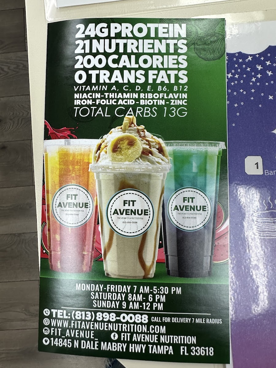 Fit Avenue Menu